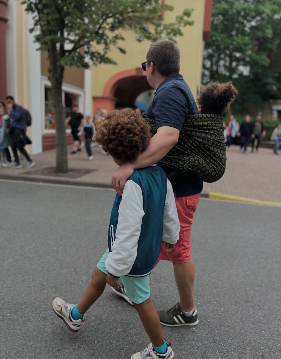 Even before I was pregnant with my first child I knew I would carry him as my mum carried us: on her back like we do in Congo. My first child was a high-need baby. He always needed to be held, to be close to me. I was using a wrap and carried him on my chest. I loved the feeling of my baby and me being one, like when he was in my womb. When he was six months old, our little family left Belgium to live in Congo. It then became a necessity for me to carry him in order to be able to manage the “everyday life”. With the birth of my second child, babywearing became even more essential, helping me keep my newborn close while still having the ability to care for my toddler. So babywearing has always been and still is, a big part of my motherhood journey.